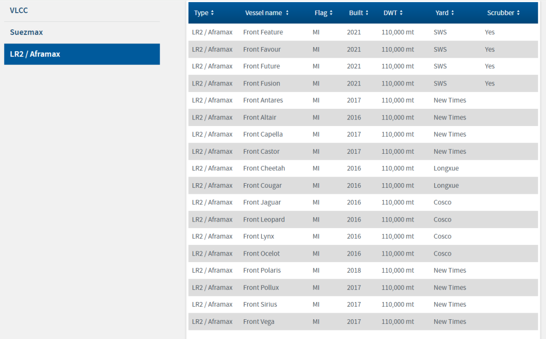 这批船舶是Frontline船队的重要组成部分。截至2025年6月30日,该公司旗下共拥有81艘船舶,包括41艘VLCC、22艘苏伊士型油轮和18艘阿芙拉型/LR2油轮。此次传闻涉及的正是全部的18艘LR2油轮,它们载重吨均为109,900吨,船龄分布从2016年至2021年不等。